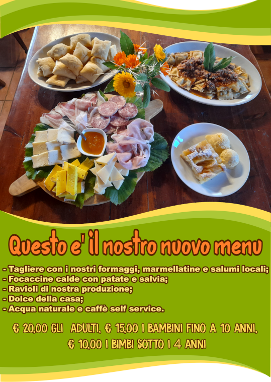 N.B. Per i bambini serviamo lo stesso menu degli adulti ma con porzioni ridotte, eventuali esigenze particolari, vanno richieste prima dell'inizio del servizio.